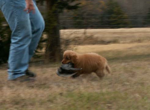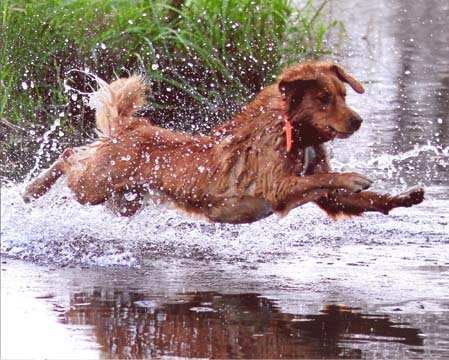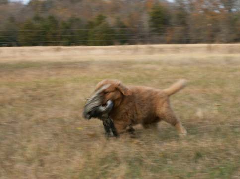 Turquoise is trained to the SH level and has three JH passes. Turquoise is a hard running girl who has a strong desire to please and very loving and affectionate. She is just as crazy about birds as her sire Apache and grand sire Flash are. She also thinks that swimming in white caps and through cattails is Fun! Due to conflicts and then being out of coat, I have not completed her CH title, but we may show her some this summer. This gal has angles in all the right places and moves like the wind.