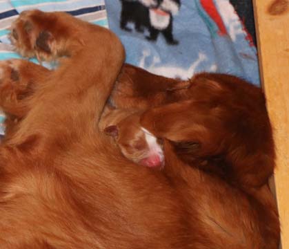 Turquoise has all her health certifications, and is tested (or clear by parentage) for all Toller genetic tests except she is a CPLS carrier. Palmer is tested Clear for All Toller Genetic tests (or clear by parentage), as well has all his other health certifications. We will be testing the litter at 2 to 3 weeks for the presence of the CPLS gene. While not a sole criteria, genetics are part of the puzzle in deciding what pup goes to what puppy person.