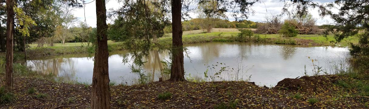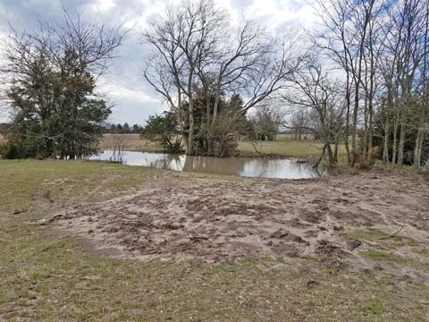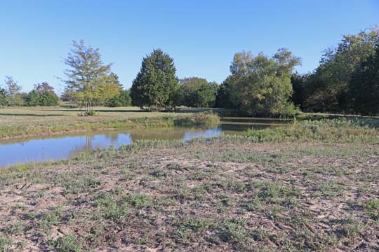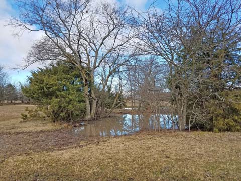 Trees and Small Pond next to Don's PondNear the middle of the Back 40, is a group of trees that presents all kinds of interesting hunt test type marks and blinds. The marks and blinds can be made more challenging when Don's Pond is also incorporated, and certainly one can use the land to make the distance as long as desired.