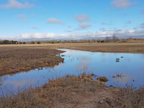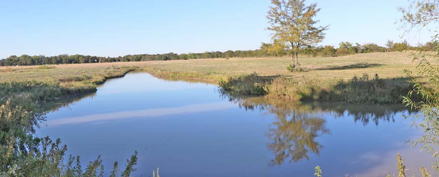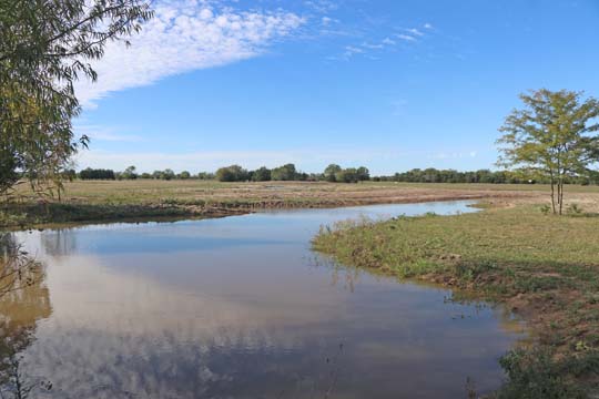 The Back 40 Pond and ChannelThe back 40 pond and channel lies close to the Technical Pond. Many interesting and advanced marks and blinds can be run across the two, and on to the land surrounding the pond complex. "Hills" give elevation to watch the retrievers as they work or to give direction on a blind. For beginning dogs one can run simple marks to teach in and outs, and then step back incrementally to increase difficulty.