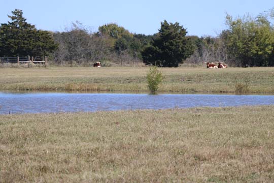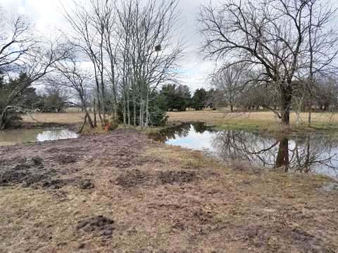 Don's PondDon's Pond is situated on the North side of the Back 40, near the center, in front of the center treed area. Don had wanted a pond that he could have fish. While we now have some native "minnows" that "magically" show up after a pond is dug and fills, LOL, Don had wanted something a "Little Bigger"! It is believed that shore birds eat the small fish in a pond, and then go to another pond and a few eggs survive to be deposited in that pond. Plans are to drag a dead tree and strategically place it in the pond to provide shade and cover for the fish. While we have not decided on a species, we do plan to introduce larger fish into Don's Pond.