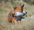 The Flash currently stands with 8 different titled offspring, 4 CH titles, and 100 total ROM points with only 20 puppies on the ground. He needs two more offspring with any title to complete his ROM. Flash is at stud by private treaty to select Genetically Clear bitches via frozen AI. I have plans in 2016 to send a straw of his semen to be tested for all the other genetic tests. Litter number one was to Landew’s Aurora Borealis CD WC. Several of these pups proved themselves in the field and in the conformation ring. His second litter was to CH Sagewood's Jinger Snap CD WC ROM. Two of these puppies proved to be the hit of the '04 NSDTRC USA National. Dory WON the Puppy Sweepstakes, and Apache won the 6-9 Puppy Class and passed the WC. CH HRCH Apache CD RA SH WCX at 11 is getting ready for his CDX obedience title. Apache was Best of Winners at the 06 NSDTRC National, and has a Group 4th, owner handled. Flash's second litter was whelped in 2006 to CH Cumberland Pool of Jetstream CGC (Puddles). This litter had tremendous success in the Conformation ring. Splash was one of the top Tollers in 2008 and 2009 with multiple group placements, and several Group wins in both AKC and UKC. Three of the litter has their CH and another is CH pointed. I also shipped two units frozen to Austria. One unit is currently for sale. Sadly the bitch became sick before her pups were born and the litter perished in saving her life. His last litter was a frozen semen litter of two and one pup is doing well in performance events. Flash has shown he passes on his excellent temperament/field ability, excellent angulation front and rear, forechest, and dark red color to compatible bitches.