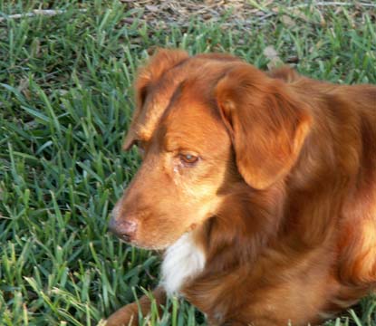 Sex Male Reg No. SD-000-492-08 Date of Birth 4/13/1996 Breed Nova Scotia Duck Tolling Retriever Owner Laura White Breeder Laura White Color Dark Red/White Call Name Flash Comments OFA Hips DTR-324G/26M-T, OFA Thyroid DTR-TH29/82M-PI, OFA Cardiac DTR-CA29/39M/C-T, OptiGen Pattern C, last eye check for other eye defects 6/2003.