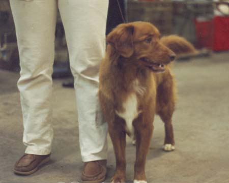 Flash has done well in the conformation ring acquiring his NSDTRC CH with three majors including a 5-point win. At the NSDTRC (USA) ’02 National Specialty he took a second in the Working Retriever Class, second in Open B Obedience, and completed the WCX test (he already had the title). In AKC competition, Flash from July 2003 to the end of September amassed 9 Best of Breeds, and 39 breed points. He was 2003 CC-Euk System Top Owner Handled Toller, toping this off by winning the 2003 AKC-Eukanuba Invitational Bred by Exhibitor Best of Breed. He was #7 Toller in 2003 CC-Euk System. At the '04 NSDTRC USA National he won 3rd place in the hotly contested Veteran Dog 7-10 year class.
