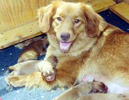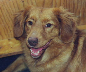 For the four short years we had Inca, she was always a loving and sweet dog. Rather on the smaller side, she was nicely proportioned, very sound with good angulation, and a short strong back. We kept her from the one litter we had from Kestrel. She was struck down in her prime before she could complete her titles. She had a five point major at the Sunshine Classic going Best of Winners and Best of Opposite Sex. She had two legs on her NSDTRC (USA) CD, with both scores in the 190's. She was just about ready to run in HRC Seasoned. Don was doing all of her training then, and they had formed a very close bond. One morning safely in her kennel her disk ruptured so violently that it destroyed 10 inches of her spinal column. I came home as usual at 8 AM, she was a bit stiff, and so I made an appointment with my vet. By the time we got her there, and then on to the neurosurgeon she was completely paralyzed. After a milogram that showed the irreparable damage, we decided that we could not keep her alive, such an active and vibrant Toller, now resigned to dragging her lifeless rear around, with no bowel or bladder control, and no hope for it to get better. Thus we made the difficult decision to ask her to wait for us at the Rainbow Bridge. Don misses her to this day.