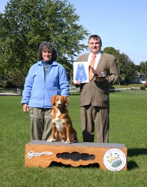 But Surfer's best and most shining venue is obedience. So far she has her CD title in three trials with THREE FIRST Placements including the 2006 NSDTRC USA National. I have not had a REAL obedience competition dog for many years. Oh yes I have done quite well, Flash has an AKC All Breed High in Trial, and I have client dogs that have taken High in Trial honors at Toller "classics" as well as many class placements with my own and client dogs. But a consistent high scoring dog would go all the way back to Teal and my Shelties. As I got more involved in the field, I did less in obedience and it takes a certain kind of temperament to be a true obedience competitor.