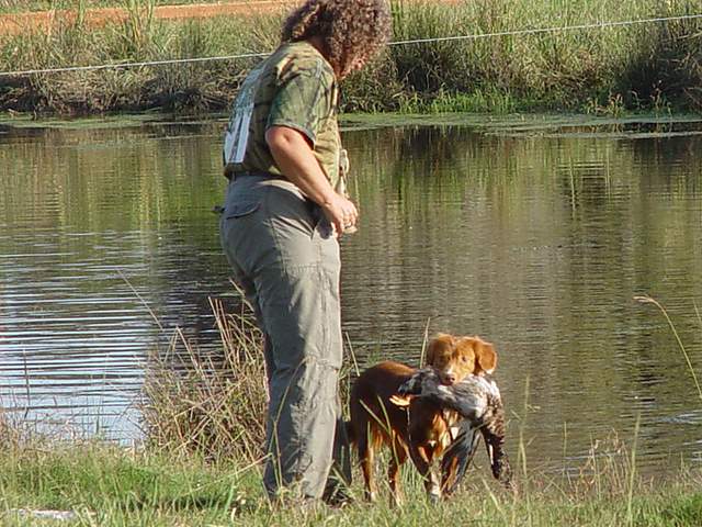At Cinnstar we specialize in training the Minority Breeds of retrievers. "Minority Breed" means any breed of retriever that is not a Field Bred Labrador Retriever. It also includes Irish Water Spaniels, Boykin Spaniels, American Water Spaniels, and Standard Poodles. We train and compete with these retrievers in AKC Retriever Hunt Tests, breed specific Working Certificate Tests/Trials, and as hunting companions. We also participate in HRC (Hunting Retriever Club) hunt tests. They are different then AKC, but VERY worthwhile. We want to especially encourage the participation of Conformation (Show) Bred retrievers in hunt tests. We are happy to work with other breeds in the Sporting group in their retrieving skills. We also specialize in "Training The Trainer", and encourage individuals to come out and train with us. Utilizing that premise, we work with owners when their retriever develops issues to analyze the problem, and develop and execute a comprehensive plan to rehabilitate their retriever. We do accept field bred Labs for hunt tests, and as hunting companions. We have experience in all phases of retriever training from Puppy Enrichment Training, Basics, Transitional, all the way thru Open All Age.