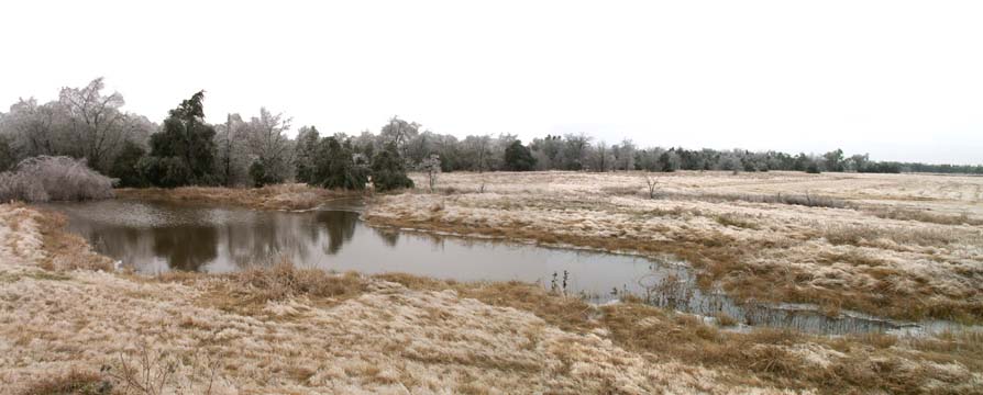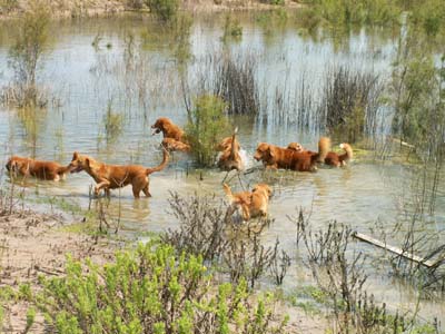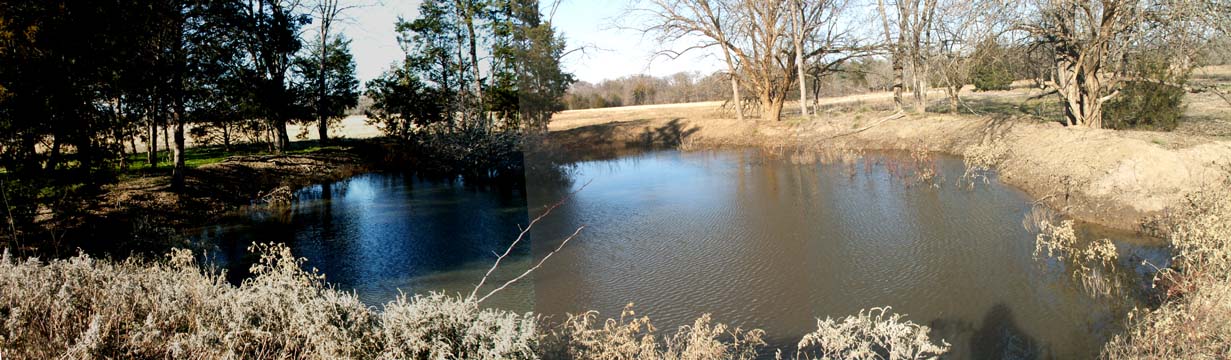 Back Pond on Land Next to Our Property We live a short drive North of Sulphur Springs, in North East Texas, and have the good fortune to have our own 65 acres of training grounds to develop. Soon Cinnstar will begin extensive pond renovation of the existing ponds (the puppy pond is finished), two large cost-share ponds and construction of a Large, 150x150 Yard All Age Technical Pond. We plan to drill a well to keep the water level up in the three ponds on the "Back 40". The immense amount of dirt will be used to "Tara-form" the terrain from almost flat, to technical terrain of the back 40 acres. We also have hundreds of other private acres and numerous ponds available to train on, some directly adjacent or across the road from our property. The terrain varies from flat to rolling. We are always on the lookout for new and interesting places to train.