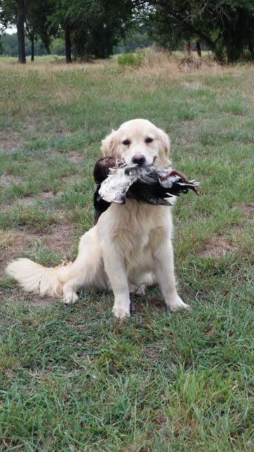 Owner ParticipationTraining retrievers in the field (or obedience) requires owner participation if the owner intends to run or hunt their retriever. At Cinnstar, Training the Trainer is ALL important! Laura can train your retriever to perfection, but if the owner is not trained as part of the program all this hard work will be for not if the owner has no idea how to handle their retriever. The more an owner comes out to train with us and runs their retriever, the better equipped they will be to handle it at the test/trials/hunting situations. At Cinnstar, we encourage all owners and their families to come out and train as much as possible with us while their retriever is with us training. For owners shipping their retriever to us (Dallas Fort Worth, DFW is the best airport), we suggest that you arrange three days to a week at the end of your retrievers stay to come out and train with us. Once your retriever finishes training you are ALWAYS welcome to come out and train with us. At Cinnstar we utilize automatic wingers like many professional trainers, however this can not take the place of a human "bird boy". Thus at Cinnstar we use both. Bird boys can make a tremendous difference in your retrievers progress.