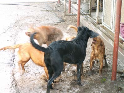 The outside of the kennel facilities will be surrounded by a large fully fenced 6 foot chain link shaded exercise area. Retrievers are let out in compatible groups to exercise and socialize during morning and afternoon kennel clean up. The owner might wish to leave a blanket, toys or bones for the retriever to have in the run. We wash blankets and toys frequently.